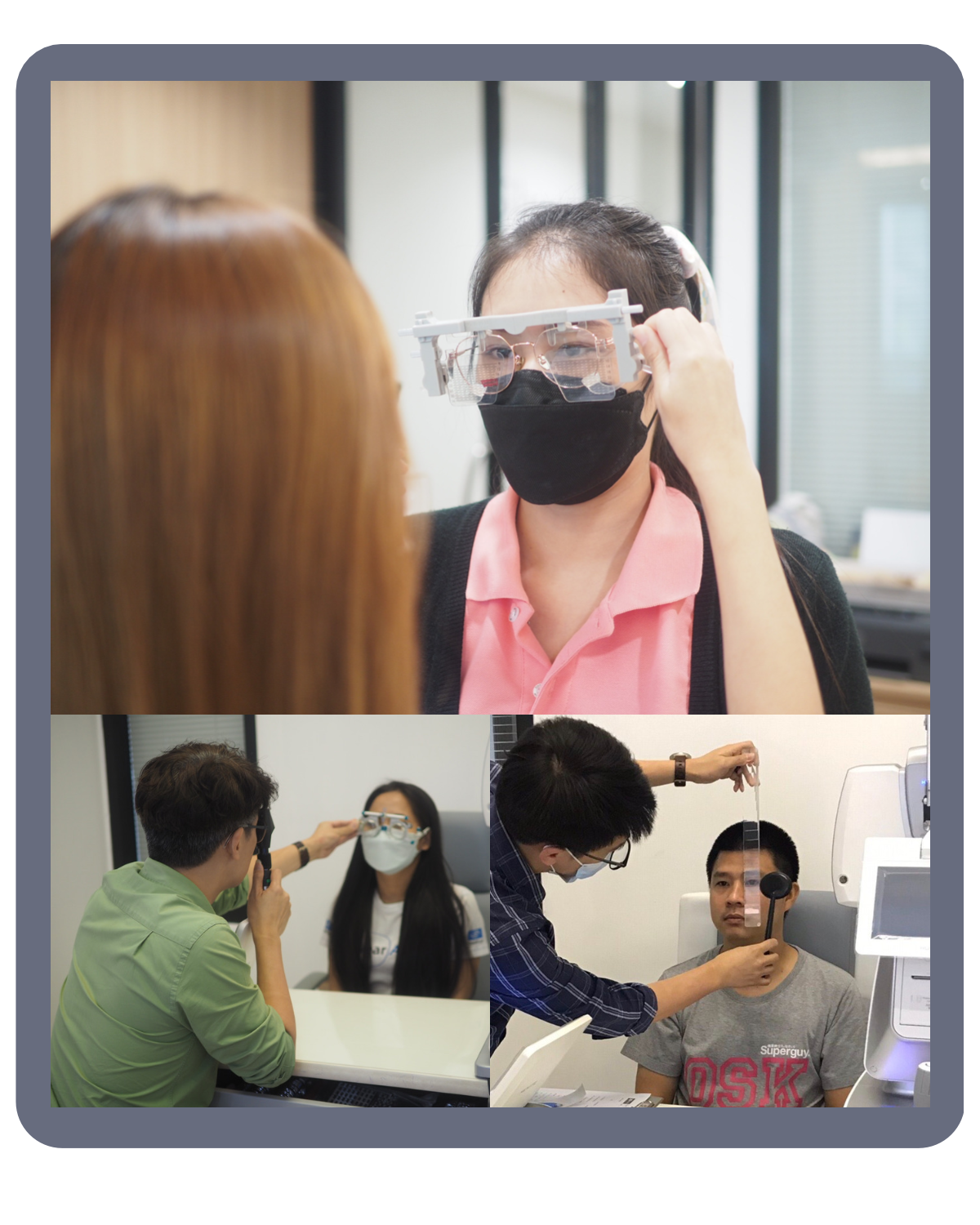 การตรวจวัดสายตาแบบ full option ของดีต่อตา รวมกับความรู้และประสบการณ์ของคุณหมอทั้ง 3 ท่าน จะทำให้คุณได้รับสัมผัสพิเศษและประสบการณ์ที่ไม่เหมือนใคร เพราะเราใส่ใจในทุกๆขั้นตอน