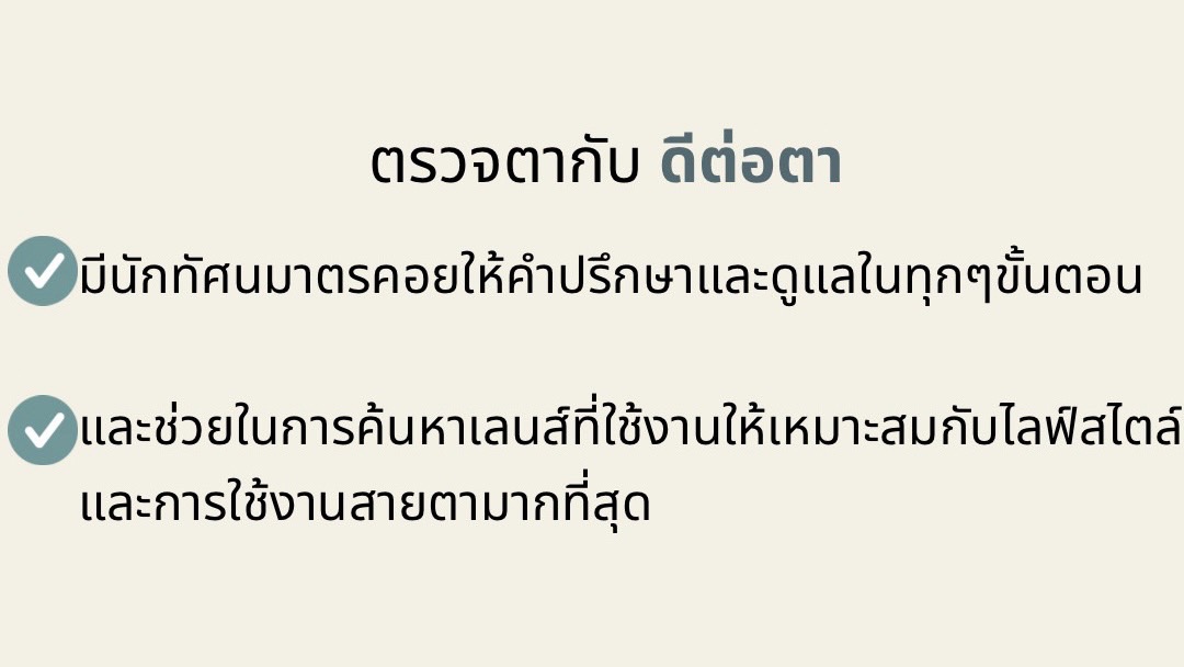 หากท่านใดสนใจตรวจวัดสายตาอย่างละเอียด และคัดกรองสุขภาพตา