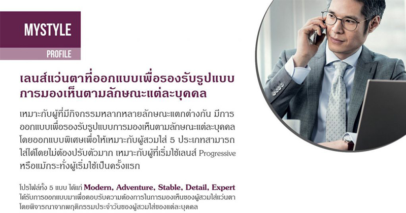 โดยคุณบุษณีเลือกเป็นเลนส์ Progressive Mystyle Profile ของ Hoya เนื่องจากทดลองสวมใส่แล้วมองได้ทุกระยะ และสวมใส่สบายตา ภาพไม่วูบวาบ และภาพกวนใจด้านข้างค่อนข้างน้อย